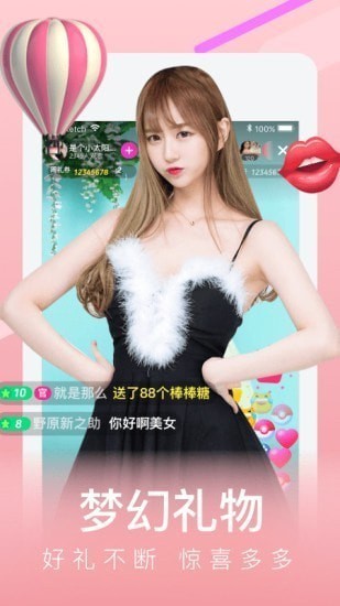 礼物丰富多彩,新奇有趣美女视频直播间里有众多秀场礼物,趣味礼物,尊贵礼物,浪漫礼物,活动礼物,一定有你想送美女直播主播的礼物,送礼动画效果酷炫,赏心悦目。