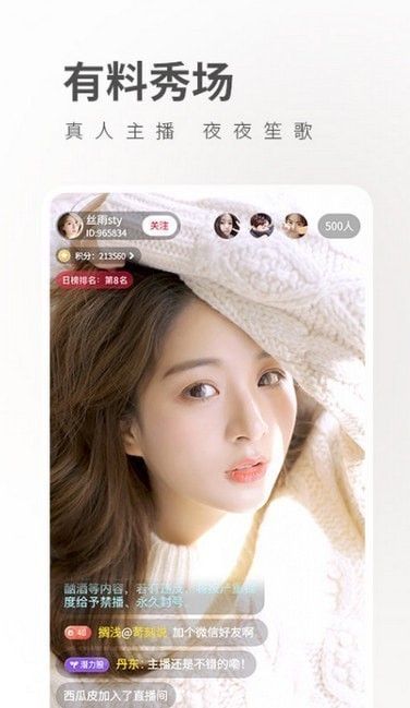 青花瓷直播手机版app是一款真人视频直播软件,平台汇集海量高颜值帅哥美女主播用户,全天直播不停歇打开手机就能观看,美女众多时刻畅嗨让您深夜不寂寞。快来单机8下载体验吧~