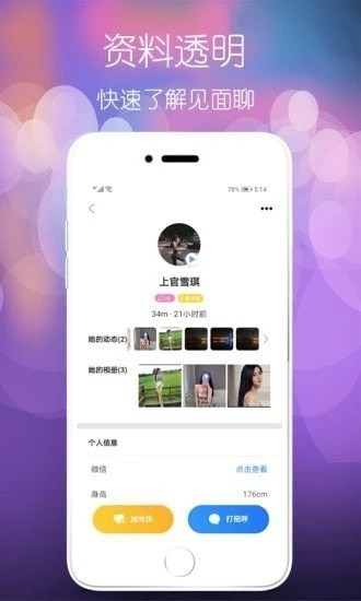 自由选择高颜值妹子比心聊天一周处cp,线上交友聊呗,线下见面约会,带你进入恋爱密室。发现附近有趣的sop伴侣,即刻告别单身。