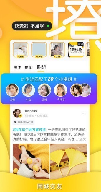 撩最靓的妞——同城动态,实时更新!她正在人民广场吃炸鸡?点个赞求偶遇,泡多多助你不尬聊!