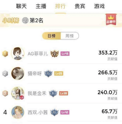 一周年庆典,榜单情况估计是很多人关注的一个点,在日榜显示中,AG超玩会战队的女老板——AG菲菲十分给力,直接以绝对性优势夺得日榜的第一名,可以说是门面十足了。