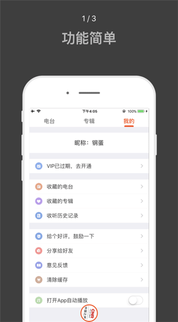 可自由调节在线收听电台的状态及时将喜欢电台进行在线分享;