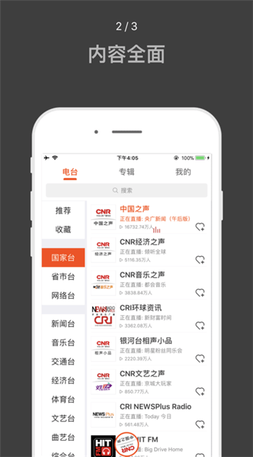 分类电台功能将不同类别的电台信息详细划分有助于轻松寻找;