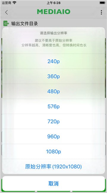 5、支持多种分辨率的视频导出(240p、360p、480p、576p、720p、960p、1080p及原始分辨率);