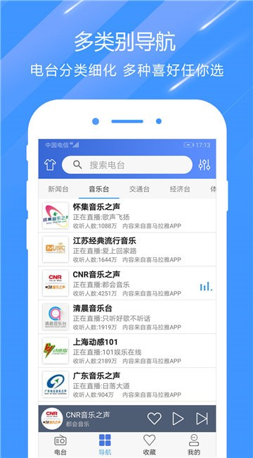 涵盖音乐,新闻,经济,交通等各种分类满足个性需求