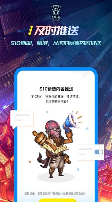 S10期间无需主动打开APP,打开推送,我们会根据你的喜好,为你推最精准、及时的赛事内容:S10前瞻、每日赛程、赛场高光时刻、大咖点评、赛事速看、各赛区网友热议、战队/选手资料库等..…一手资讯,精彩内容,在玩家说,一网打尽