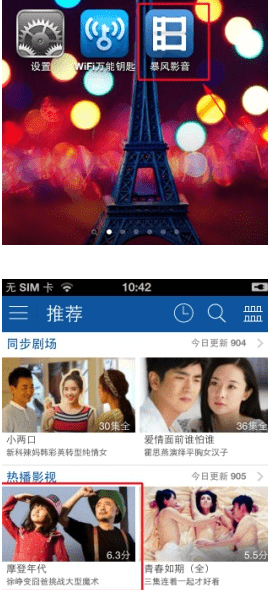 第一步:首先打开你的暴风影音手机版软件,选择自己想要看的视频,如小编选择的是摩登年代。