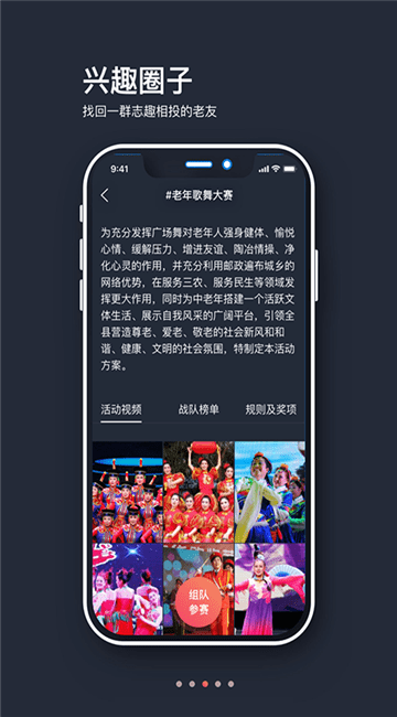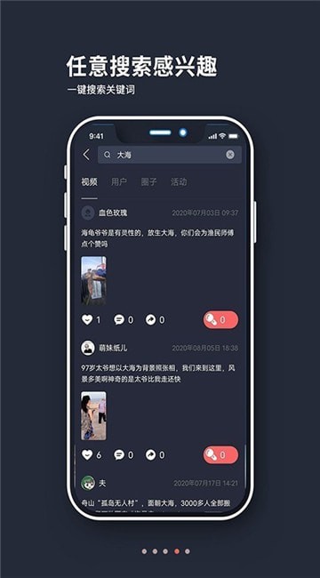 山海余升手机版是一款专为中老年人打造的短视频互动交友平台,软件内聚集了海量中老年用户,提供视频拍摄、点赞分享、互动交友等功能,为广大中老年用户提供各种丰富、精彩的社交活动,感兴趣的朋友就来下载体验吧!