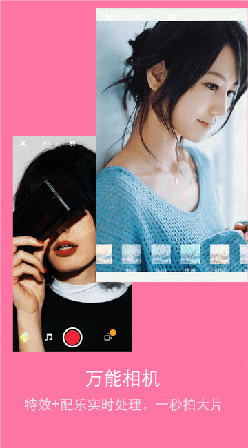 创新拍摄模块,美化+配乐实时处理,一秒拍大片!