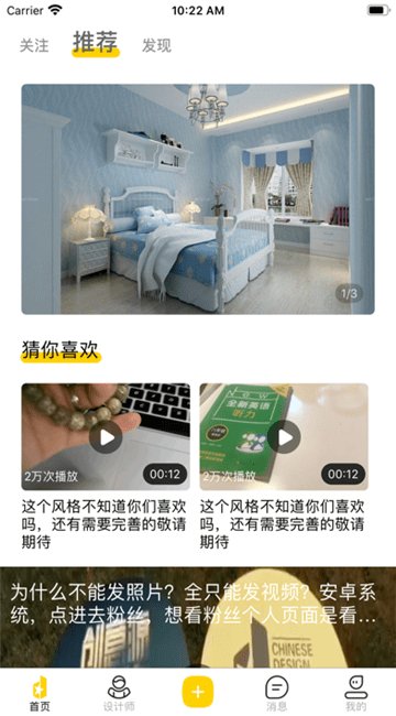 星说短视频APP是由中国设计星打造的平台,中国设计星陪伴国内青年设计师走过五年时光,孕育出一批批优秀的设计师。星说短视频APP专为全国设计师打造,为设计师与设计作品而发声,作品可采用图文、视频等形式传播。