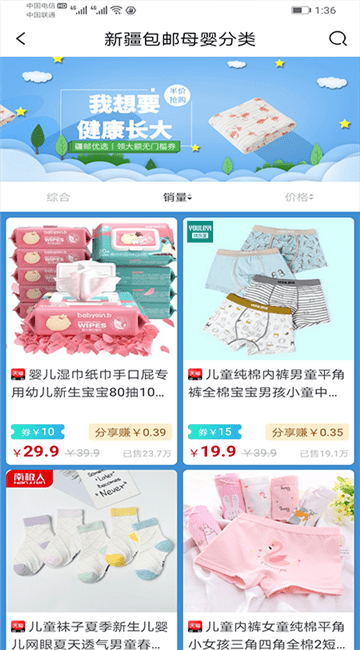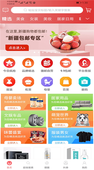 疆邮是一款手机在线购物的软件,该软件为用户提供新疆包邮专区,商品种类丰富,用户可以根据自己的需求在线选择购买,每天还有大量优惠活动,还能免费领取优惠券,让你边买边省,有需要的朋友快来下载使用吧!