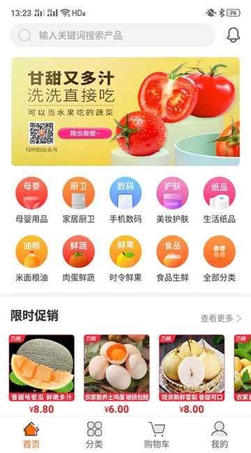 巧麦客app是一款网络购物软件,巧麦客app专注于降低市民生活成本,即时配送一站式购物平台。巧麦客app商品品类包含母婴用品、家具厨卫、手机数码、美妆护肤、生活用品、米面粮油、肉蛋鲜蔬、时令鲜果、食品生鲜等。