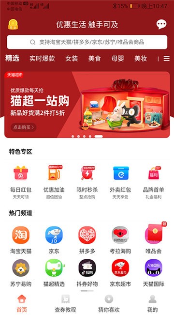 6.【找劵】淘宝天猫优惠券一键搜索领取,心爱商品再也不用苦等降价;