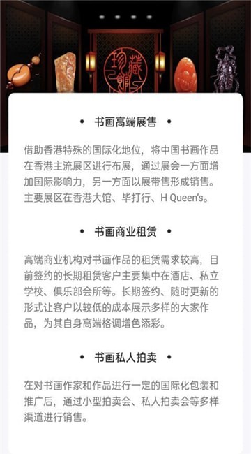 2、内容涵盖书画文化知识、书画历史、书画行规、书画行业新闻等资讯内容。