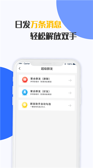 首创聚合群发,智能一键发送;