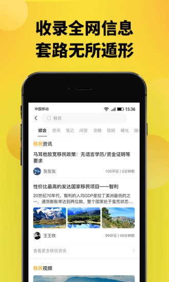 5.一键快速的搜索留学移民的资讯信息内容;