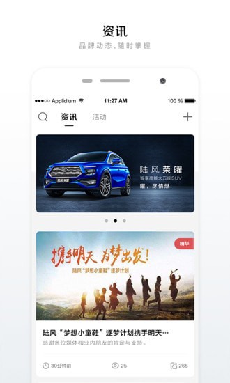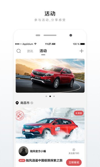社交:资讯为发表陆风生活相关的新闻;活动为或者经销商发布的线上线下活动,用户可以报名参加;
