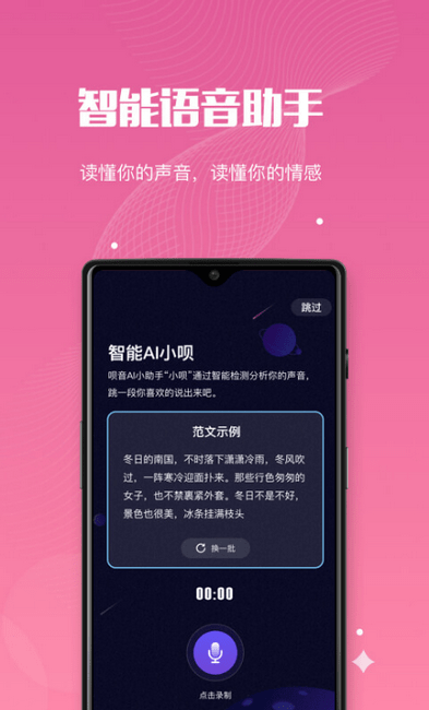 语音AI“小贝”5秒极速读懂你的声音,通过海量语音数据分析你的声音数据,给你提供准确的声鉴报告以及智能推荐属于你的TA。