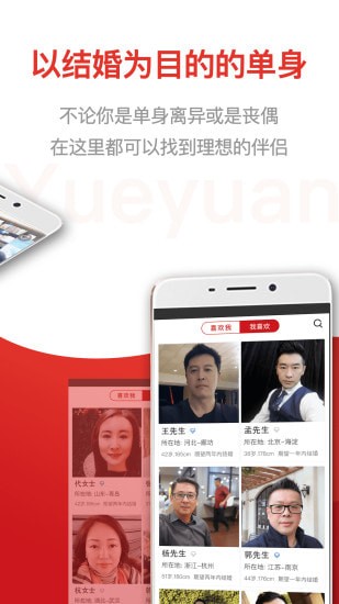 悦缘婚恋是一款专为单身成熟人群服务的婚恋交友软件。软件主要为离异丧偶及大龄单身有明确结婚计划的会员提供严肃、真实、可靠的婚恋交友软件。软件采用严格的金融认证AI进行全方位认证机制,对会员的身份、学历、车房等进行全方位认证。悦缘婚恋的创立目标是让每一位成熟单身人士都可以在软件找到理想伴侣。打破高收费、低效率、人群杂的传统婚恋模式,创造新颖高效的互联网婚恋软件。