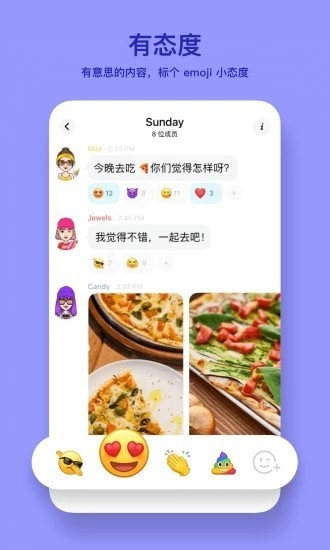 头像会随着聊天内容自动变化,聊天消息24小时后自动消失,支持100人群聊,支持无限撤回,截屏通知……