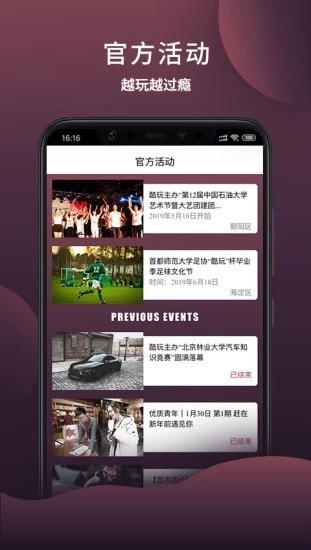 在个人中心还能查看自己的活动记录,与趣味相投的朋友打成一片;