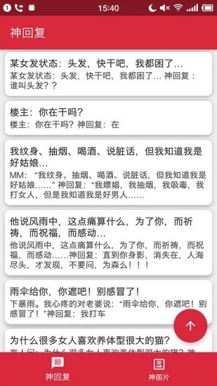 神回复最新版app是一款趣味段子app,有爆笑百出的gif图和神器的美图,还有神之段子和神补刀的评论回复,专治不开心,快来小黑游戏下载体验吧!