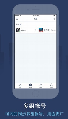 1.打开同步圈APP,在关联界面添加关联帐号。