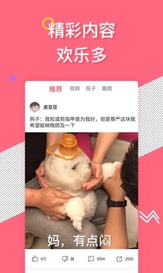 笑一笑十年少,笑口常开对身体非常有益,今天为大家推荐的这款皮豆app是一款内容丰富的资讯阅读软件,覆盖了海量网络热点内容,搞笑视频,内涵段子、新鲜趣图以及斗图必备表情包,你想看的精彩内容这里全都有,各种段子、趣图汇集在这里,保证让你笑料百出,其次,在皮豆app刷内容,看段子还能赚取零花钱,一边刷内容一边看视频,精彩娱乐不间断,喜欢搞笑的朋友们赶快下载体验吧。