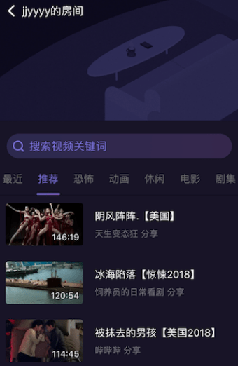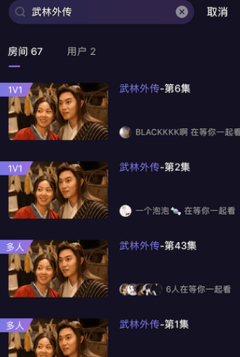 点击顶部的搜索按钮,就可以搜索自己想看的剧的的放映房间。然后选择自己想要进入的房间就行。