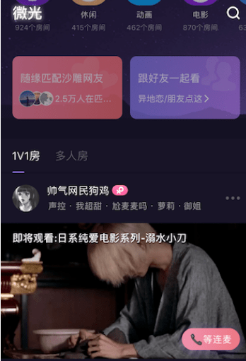 单身的你,可以在微光找人一起看片、听歌、连睡、看搞笑视频~