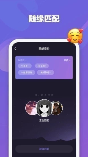 1、随机的进行匹配,每次可以和不同的人一起看,但是都是根据你们各自的喜好进行配对;