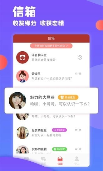 信箱功能,查看所有联系过的异性信息和聊天信息,方便快捷;