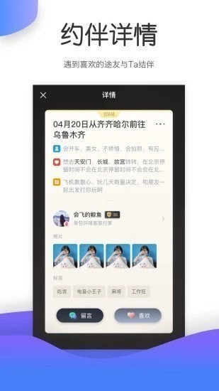 1、约伴:说出你的约伴想法,相约理想中的TA,共享旅途时光