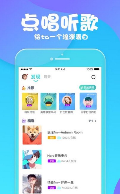 泡泡陪我APP这是一款非常独特的社交软件,您可以使用声音在线进行聊天,利用声音了解彼此,快速的找到自己的知心朋友;每天都可以在这里进行语音聊天,让自己可以在陌生的城市中拥有可以聊天的好友,不在孤单一个人了;您还可以在这里进行K歌,开启私人的K歌模式,让自己每天都可以在这里发泄自己的工作压力,让自己拥有更多的娱乐时间;在线可以进行各种有趣的游戏语音开黑,与好友在线进行游戏,找到更多的游戏乐趣,在游戏世界中可以更好的进行配合,发挥自己的游戏实力,帮助您轻松的上分吃鸡