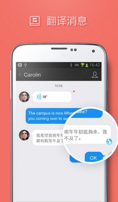 实时翻译接收到的消息,支持19种语言,语言不同不再是沟通的障碍。