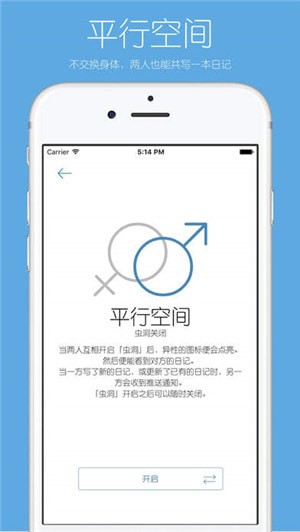 -「平行空间」功能:两个人可以互相开启平行空间,便能看到彼此的日记。就像动画里面一样。