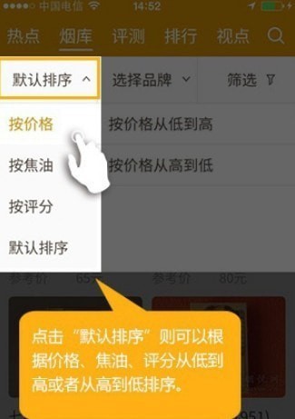 烟库里有详细的烟品信息资料,还有网友点评、评分可做参考。点击顶部菜单还可进行排序、选择品牌、筛选操作。