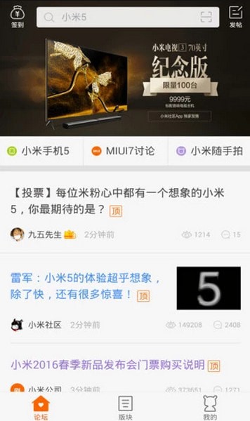 小米论坛APP是由小米推出的手机在线论坛,用户可以在手机上享受全新的交流方式,这里是每一个米粉的聚集地,这里是每一个小米资源分享的地区,在这里能够发现更多的精彩。小米论坛有着全新设计的界面,用户可以随时随地分享自己的帖子,向全国各地的米粉寻求帮助,解决自己小米手机上的故障问题。