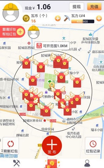 2、基于地理位置的抢红包,每天都可以抢。
