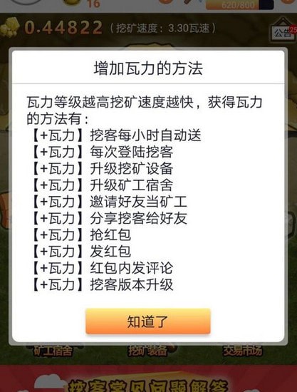 从你下载注册开始就不间断地挖矿,花费一定的时间获得一枚瓦币,而花费的时间长短则是由每个玩家自己的瓦速决定的,瓦速越快,挖出一个瓦币花费的时间越短,反之同理。