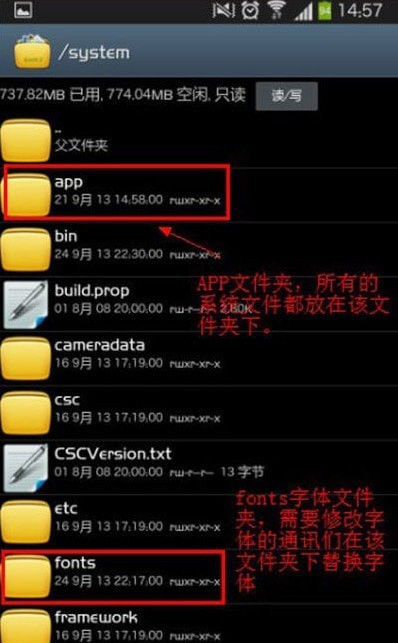 2、找到 system 文件夹后继续打开 system/app 文件夹