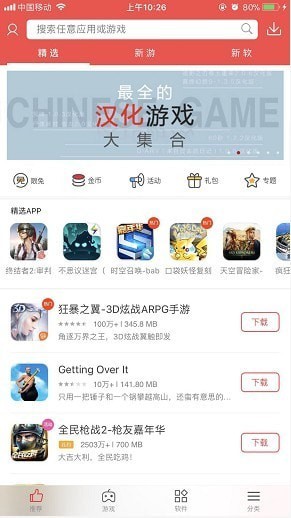 点击首页资源栏中相应的分类,即可进入编辑推荐、热门游戏、热门软件分类。用户按照之前找资源的习惯很快上手,很容易找到一些优秀的软件资源。