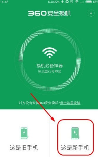 4、在新手机上打开360安全换机,点击【这是新手机】
