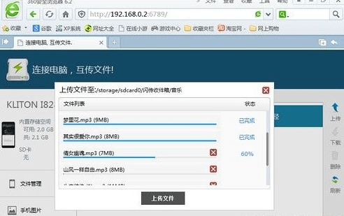 在浏览器中打开后,照片、音乐、电影、办公文档、电子书、安装包等文件即可相互传送。
