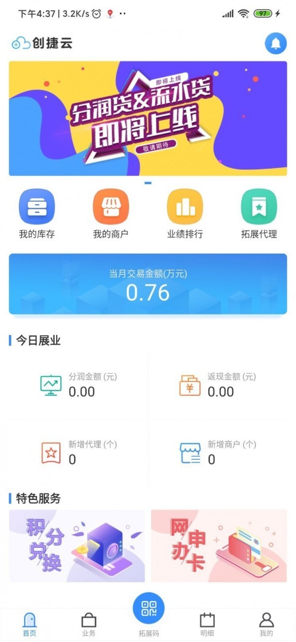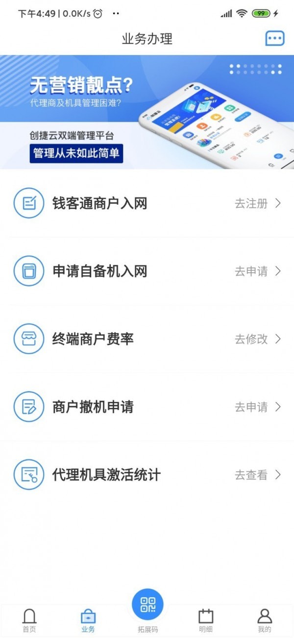 创捷云是一款POS服务商管理工具,以创新、极致、优服为企业发展核心,为广大移动支付创业者提供安全、便捷、全面的技术支持及行业解决方案,让从业者简单创业、轻松赚钱。创捷云是一款中小型线下收单授权商户提供便捷的商户入网及管理的应用管理工具,致力于为创业者提供安全、便捷、全面的技术支持及行业解决方案,让从业者简单创业!
