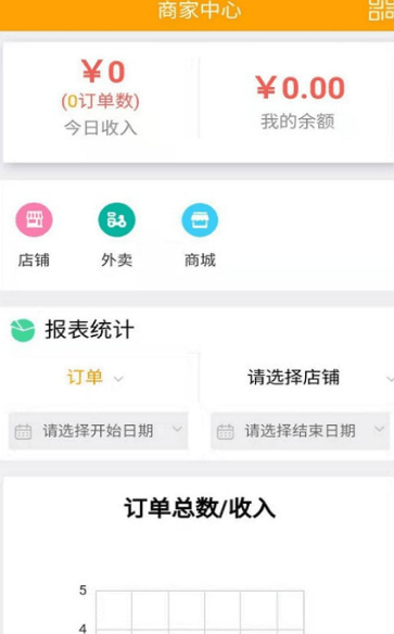 1、打开商家APP进入商家中心,可查询订单及金额详情,管理店铺
