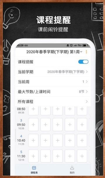 【学期管理】每周课表app可以随时查看每个学期课程。