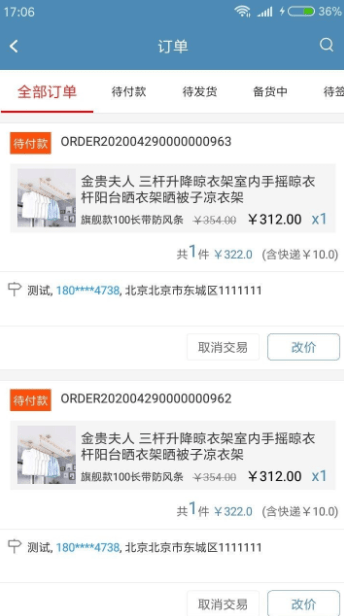 3、订单管理:商家可以查看具体销售的订单情况,并操作订单;