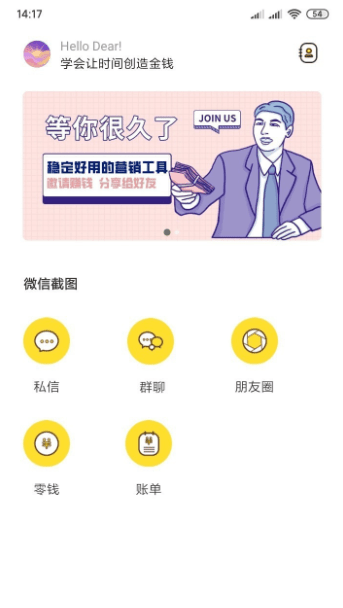 模拟对话生成器操作界面,私信、群聊、朋友圈、零钱、账单等简单生成,效果逼真;每日更新大量的朋友圈素材,满足日常工作所需,一键转发!