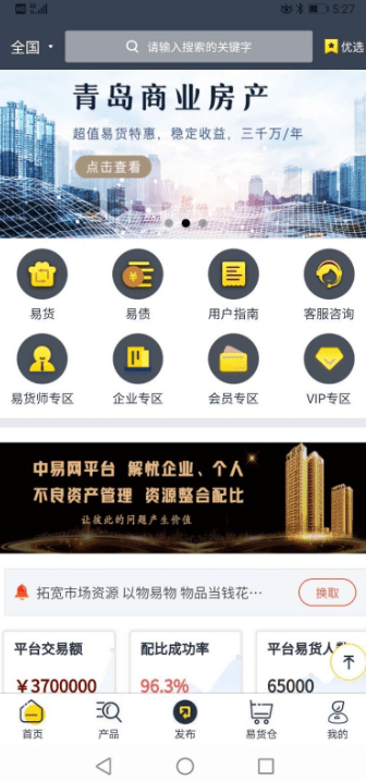 客户可在APP发布自己需要易货的商品,该商品可以在app直接换取,可以可以在app换取自己需要的商品